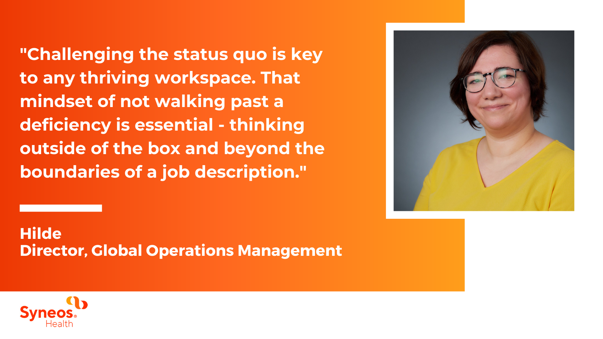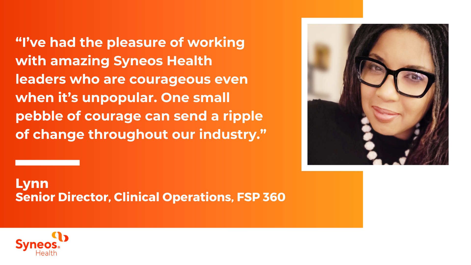 Each day we get to call upon some of the industry’s most dynamic, thought-provoking colleagues. Together, we are committed to our customers’ success. We work across our company, and across our disciplines, sharing ideas, respecting one another’s opinions and providing constructive feedback. It’s this dynamic, that makes Syneos Health different. We know that collaboration with our colleagues and with our customers unlocks creativity, innovation and new solutions.
