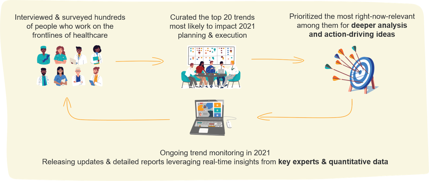 For 2021, we disrupted our year-long outlook on the trends relevant to life science leaders. Instead of sharing a perspective based on a single point in time, we provided a high-level view of our early predictions and then went deeper into the ones most critical and most actionable at key points over several months.
